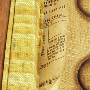 Very rare and beautiful ash wood easy chair with original yellow checked pattern fabric.