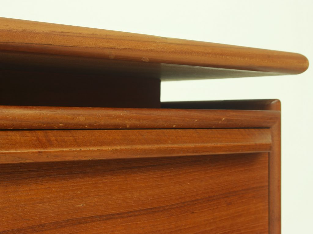 Stunning teak veneered desk with solid drawer handles and solid sculpted legs.