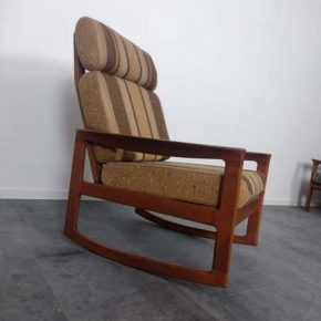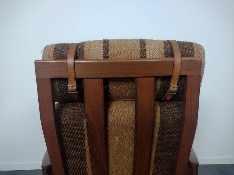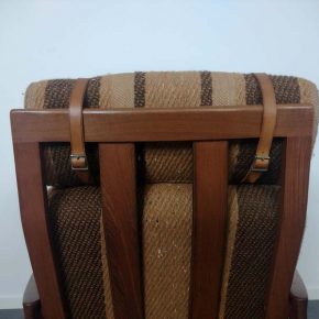 Stunning rocking chair with beautiful shaped frame made of solid teak and leather straps.