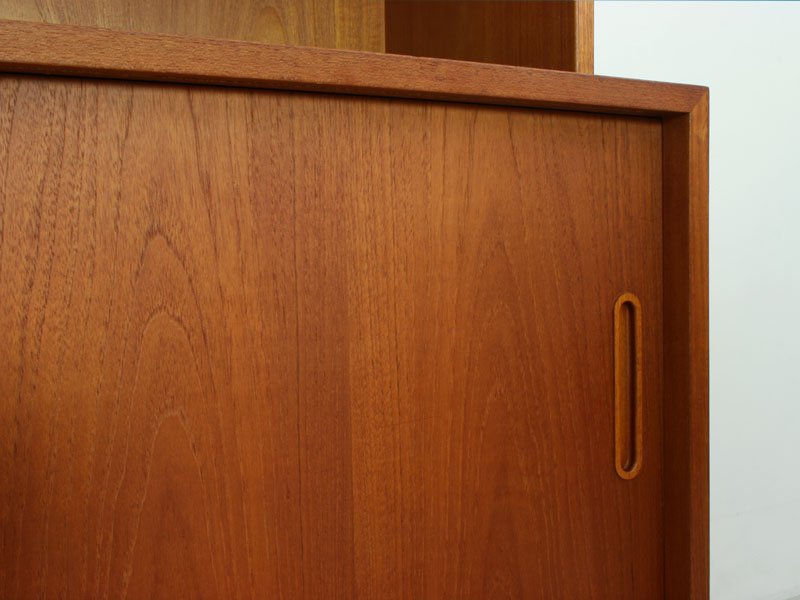 The doors have beautiful oval long handles in solid teak. Between the above and the bottom part is a practical cavity for cables.